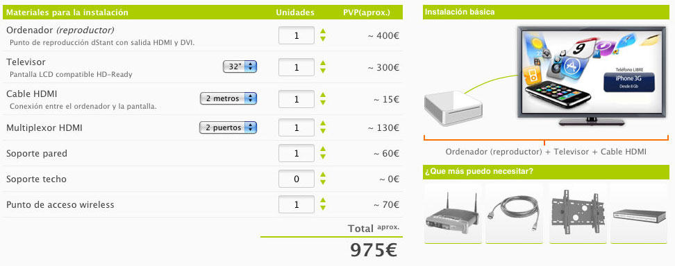 A continuació li fem una valoració del material necessari per implantar el sistema en el seu negoci, si necessita més informació pot posar-se en contacte omplint el formulari que apareix al peu d'aquesta mateixa pàgina.